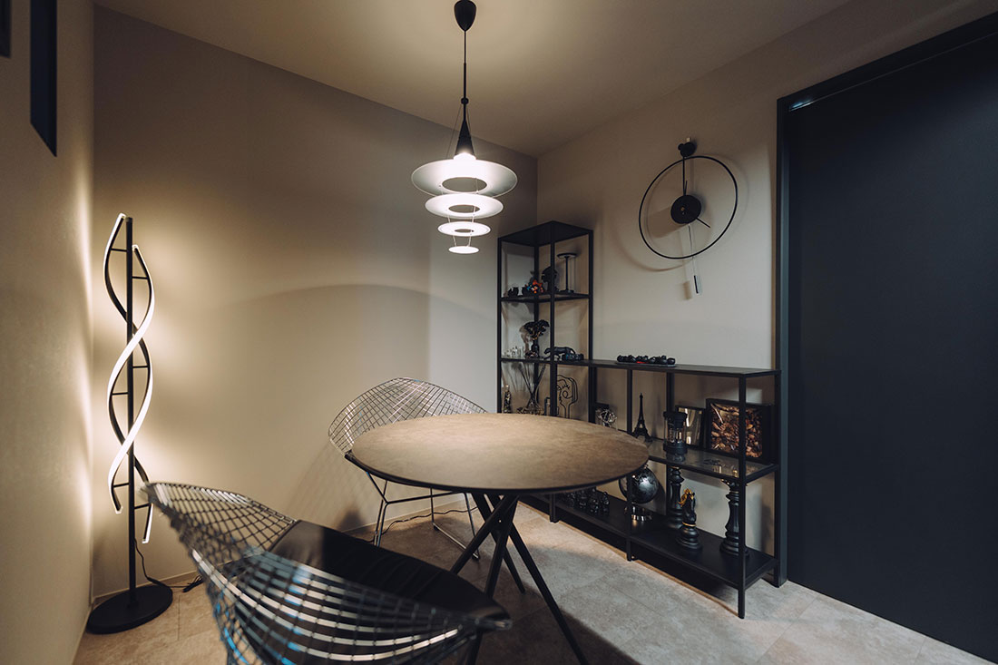 モノトーンを基調にこだわりの素材や照明でお二人らしいスタイリッシュな空間に仕上がりました。そこにT様の審美眼に叶った素敵な小物たちが空間を彩り、ご生活を楽しんでらっしゃるようでとても嬉しく思います。これからもご自宅で、楽しく豊かな時間をお過ごしいただけますよう願っております。