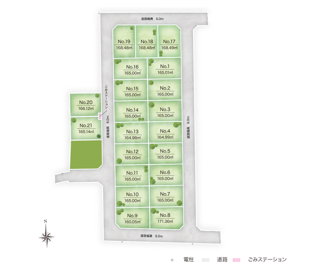 - 敷地面積:160.05㎡(48.41坪) 〜 171.36㎡(51.83坪)